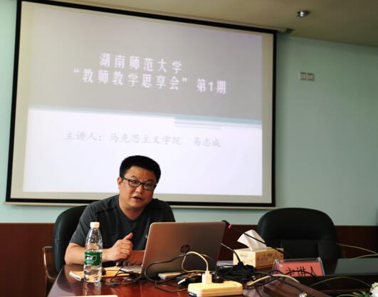 易志成老师以“用好课堂教学这个主渠道”为主题分享了自身多年的教学实践经验。他着重从“课堂案例与课堂问题设计”、“注重员工日常言行,进行教学反思”、“树立教育自信”以及“思想政治理论教育供给侧改革”等四个方面介绍了自己教学方法以及遇到的问题。其他教师通过自身在教学中的经验针对如何提高思想政治理论课的质量分享了自己的见解,进行了思想上的交流与碰撞。