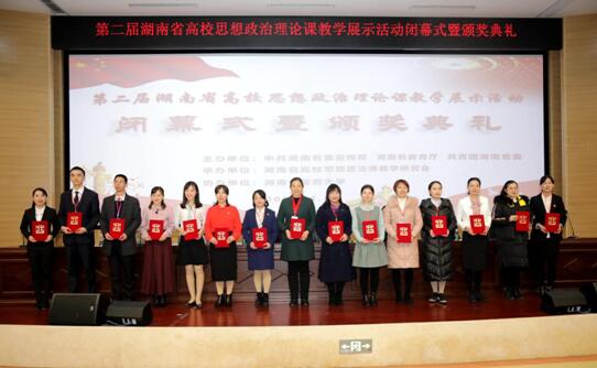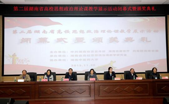 11月30日上午,由湖南省委宣传部、省教育厅、共青团湖南省委主办、湖南省高校思想政治理论课教学研究会承办、湖南省中医药大学协办的第二届湖南省高校思想政治理论课教学展示活动在湖南省中医药大学举行。省教育厅党组成员、省委教育工委委员徐伟、团省委副书记钟娜、省高校思想政治理论课教学研究会常务副会长、公司董事长刘起军、湖南省中医药大学党委副书记肖小芹等出席闭幕式暨颁奖典礼。