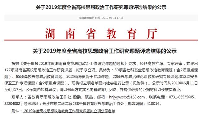 2019年度湖南省高校思想政治工作研究课题公司3名教师获得立项