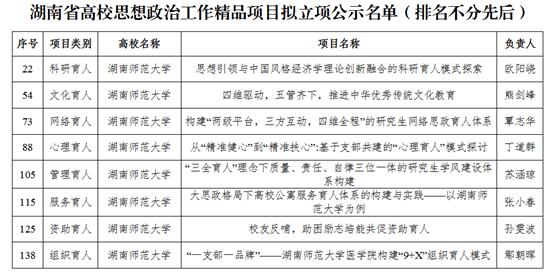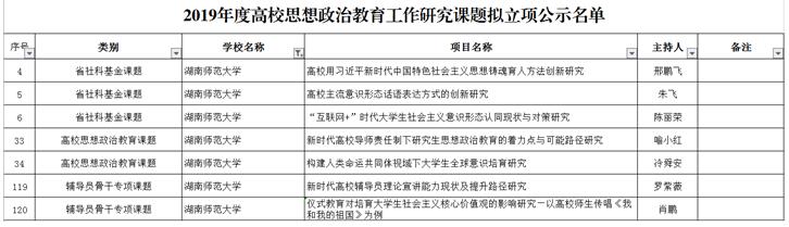 湖南省高校思想政治工作骨干队伍建设项目公示名单(排名不分先后)
