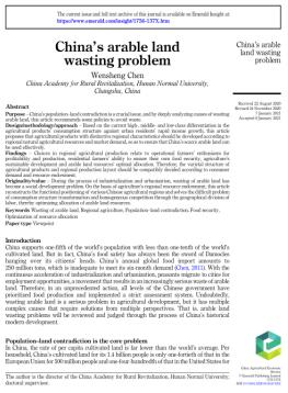 由beats365官方网站中国乡村振兴研究院经理陈文胜教授独著的论文《China’s arable land wasting problem》发表于SSCI与SCI双检索期刊《China Agricultural Economic Review》。