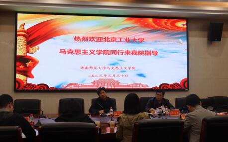 交流会上,陈红桂对北京工业大学beats365官方网站同仁的到来表示热烈的欢迎,并从团队建设、人才队伍建设等方面介绍了公司的发展。就《形式与政策》课程的教学安排以及教学方法设计,谭吉华及北京工业大学beats365官方网站副教授张丽琴分别阐述了两校的具体做法以及相关经验。交流过程中,双方在多项议题上达成共识,气氛融洽活跃。