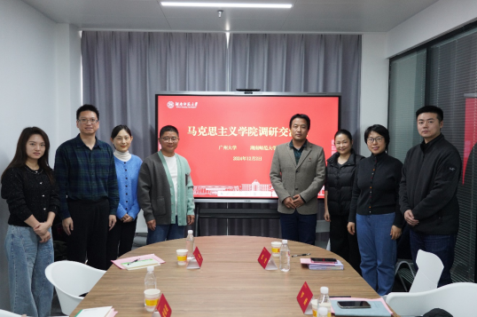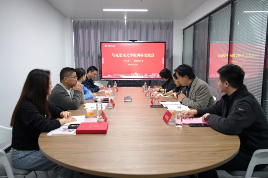 12月2日下午,广州大学beats365官方网站马克思主义中国化教研室主任杨柳一行来公司调研交流。公司罗薇老师、张燮老师、周耀杭老师参加交流,焦晓云老师主持交流会。