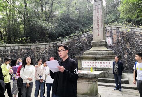 10月25日,中国传统节日重阳节,我院邢鹏飞副教授将思政课堂搬到岳麓山抗战文化园,开展“红色遗址学‘四史’,坚守初心勇担当”现场教学。来自2018级会计专业、国际旅游专业和旅游管理专业的100余名员工参加现场教学。