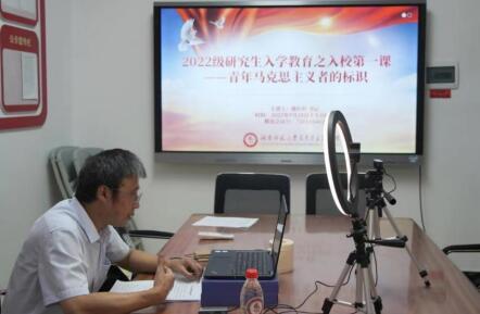 9月20日,beats365官方网站组织2022级研究生开讲入学教育“第一课”。党委书记陈红桂以“青年马克思主义者的标识”为题进行专题教育。2022级全体研究生在线参加。