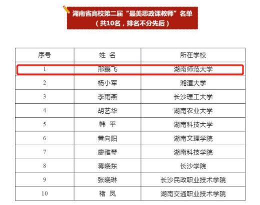 为深入学习贯彻习近平新时代中国特色社会主义思想,特别是习近平总书记关于教育的重要论述和对湖南工作的重要讲话重要指示批示精神,大力培养选树新时代高校思政工作队伍和老员工先进典型,充分展现全省高校“三全育人”综合改革工作新成效,以实际行动迎接党的二十大胜利召开,省委宣传部、省委教育工委、省教育厅联合开展了湖南省高校第二届最美思政课教师推选活动。