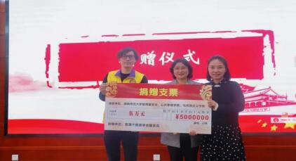 社会爱心人士代表、佛山嘉恒食品有限公司总经理温钊和、公司党委副书记林峻、公共管理公司党委副书记孙雯波上台主持捐赠仪式