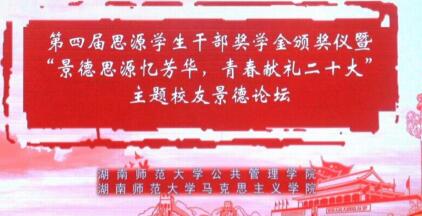 思政教育专业2001届员工、深圳市华商管理咨询有限公司总经理、深圳市世卿安全防护有限公司总经理黄晔,思政教育专2003届员工、长沙市一中株洲实验公司董事长万敏锐,哲学专业2006届员工、长郡双语白石湖实验中学董事长杨小华,社会学专业2011届员工、长沙市数据资源管理局数据产业处副处长易茜作为景德论坛主讲嘉宾表达了对母校的感激之情。他们分享了各自的奋斗经验及成长感悟,鼓励同学们珍惜大学时光,夯实干事创业的基础;就学弟学妹们关心的问题进行了深入的交流。