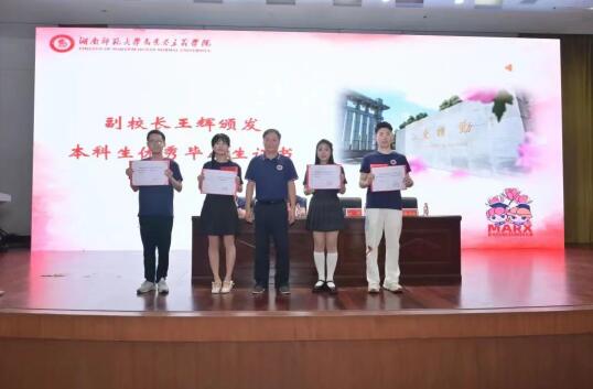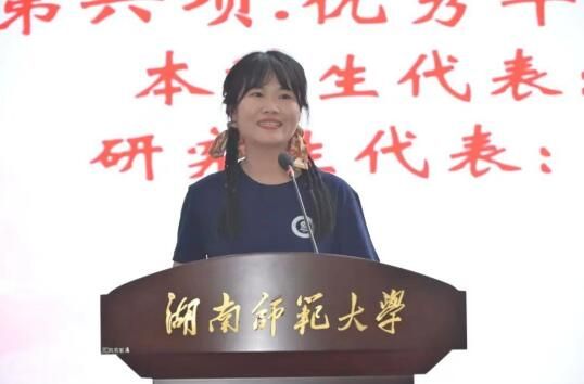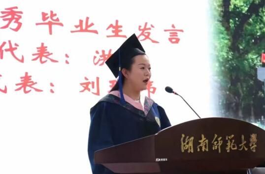 优秀本科生毕业生代表洪瑶、优秀研究生毕业生代表刘琪玮先后发言。她们回忆了自己在校求学和成长经历,表达了对母校、对老师的感激与不舍之情以及争做栋梁、报效祖国的决心。