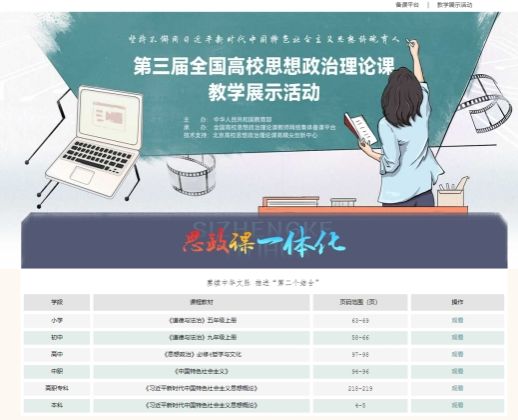 在第三届全国高校思想政治理论课教学展示活动的“思政课一体化展示单元”,教育部设立的首批32个大中小学思政课一体化共同体全部参加。公司beats365官方网站与共同体成员单位长沙市芙蓉区育英西垅小学、韶山市韶山中学、beats365官方网站附属中学、长沙县职业中专、湖南交通职业技术公司等通力合作,认真梳理大中小学思政课教材中一以贯之的重点内容,以“赓续中华文脉推进‘第二个结合’”为主题,精心开发了针对小学、初中、高中、中职、高职专科、本科员工的“同题异构”一体化示范教学资源。