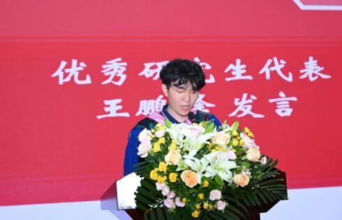 优秀本科生毕业生代表徐梓浔、优秀研究生毕业生代表王鹏烽先后发言。他们结合个人经历、学习感悟,表达了对公司、导师的由衷感谢,争做栋梁、报效祖国的决心。