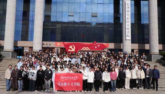 (通讯员 谌柳臻 徐雨欣)习近平总书记在党的二十大报告中强调“努力使尊法学法守法用法在全社会蔚然成风”。为深入贯彻落实这一精神,11月28日,在丁峰老师的精心组织下,思政教育系主任杨果老师、徐新老师、戴晓慧老师带领23级思政一、三班员工及部分研究生走进长沙市天心区人民法院,开启一场伦理学与法学的联合课堂。
