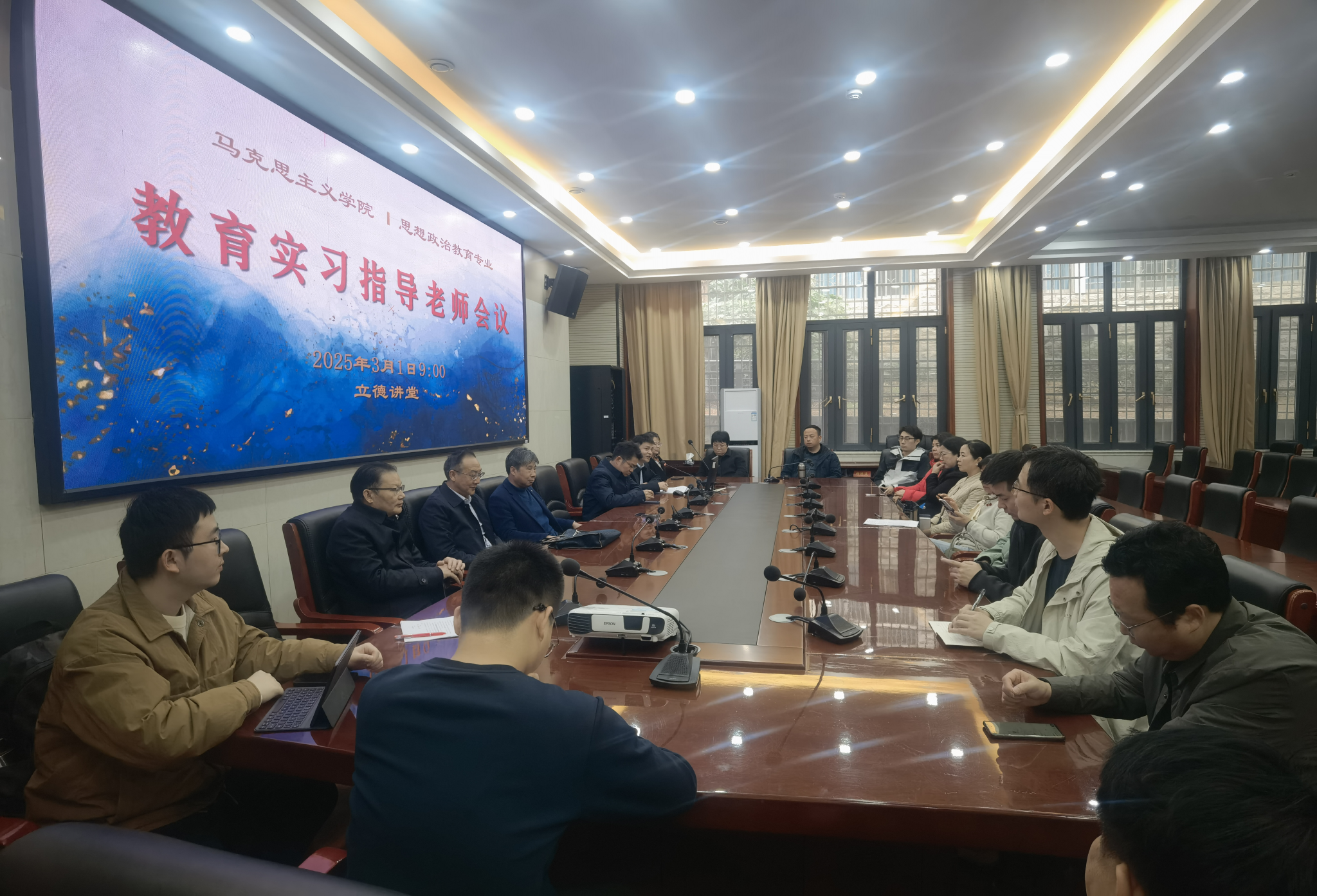 杨果根据公司《教育实习研习指导教师工作条例》《思政教育专业2024年教育实习计划》,详细解读了实习目的、实习内容、实习期间各阶段任务、要求,并重点强调了实习期间的纪律、安全等问题。