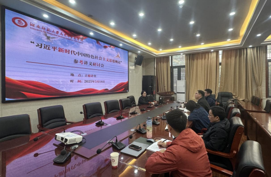 3月18日上午,习近平新时代中国特色社会主义思想概论课系组织“用活参考讲义,建好概论金课”主题研讨会,进一步推进习近平新时代中国特色社会主义思想概论课“金课”建设。系主任邢鹏飞老师主持教学研讨会。
