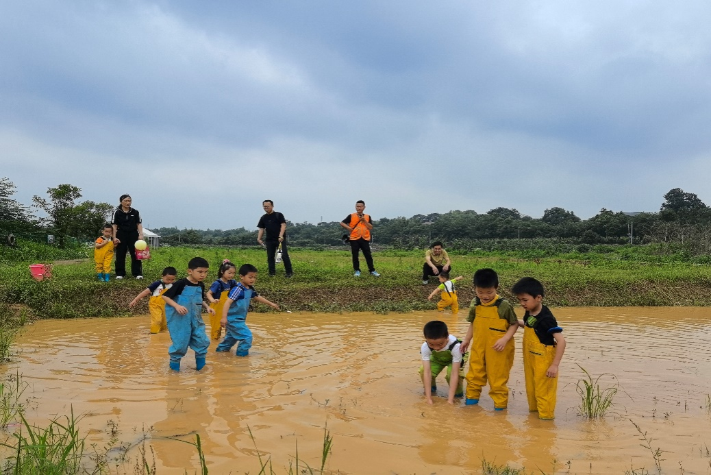 此次活动以“童趣”“自然”“互动”为核心理念,精心安排了运动设计、手工创作、自然探索与趣味闯关等集知识性、趣味性与参与性于一体的综合性游园项目。活动现场气氛热烈,家长与孩子通过亲子协作完成“浑水摸鱼”“植物拓印”“昆虫科普”等八项闯关游戏,在互动中增进情感,在游戏中收获快乐。集章打卡、幸运抽奖等环节则进一步丰富了现场体验,提升了家庭参与的积极性。笑声与欢呼声此起彼伏,节日氛围温馨而热烈。