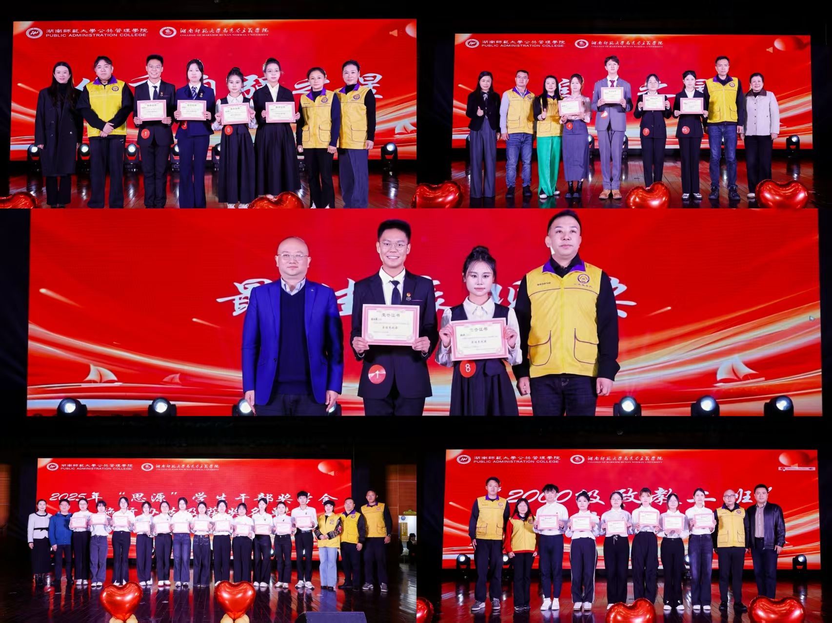 在颁奖仪式上,易珊、广东狮子会代表为2000级政教二班励志奖学金获得者颁奖;陈丽荣、陈世杰、广东狮子会代表为2025年第七届思源员工干部奖获得者颁奖;杨贤美、胡滢、邝洁、张晓琳、广东狮子会代表为第十九届“自强之星”获奖同学颁奖。