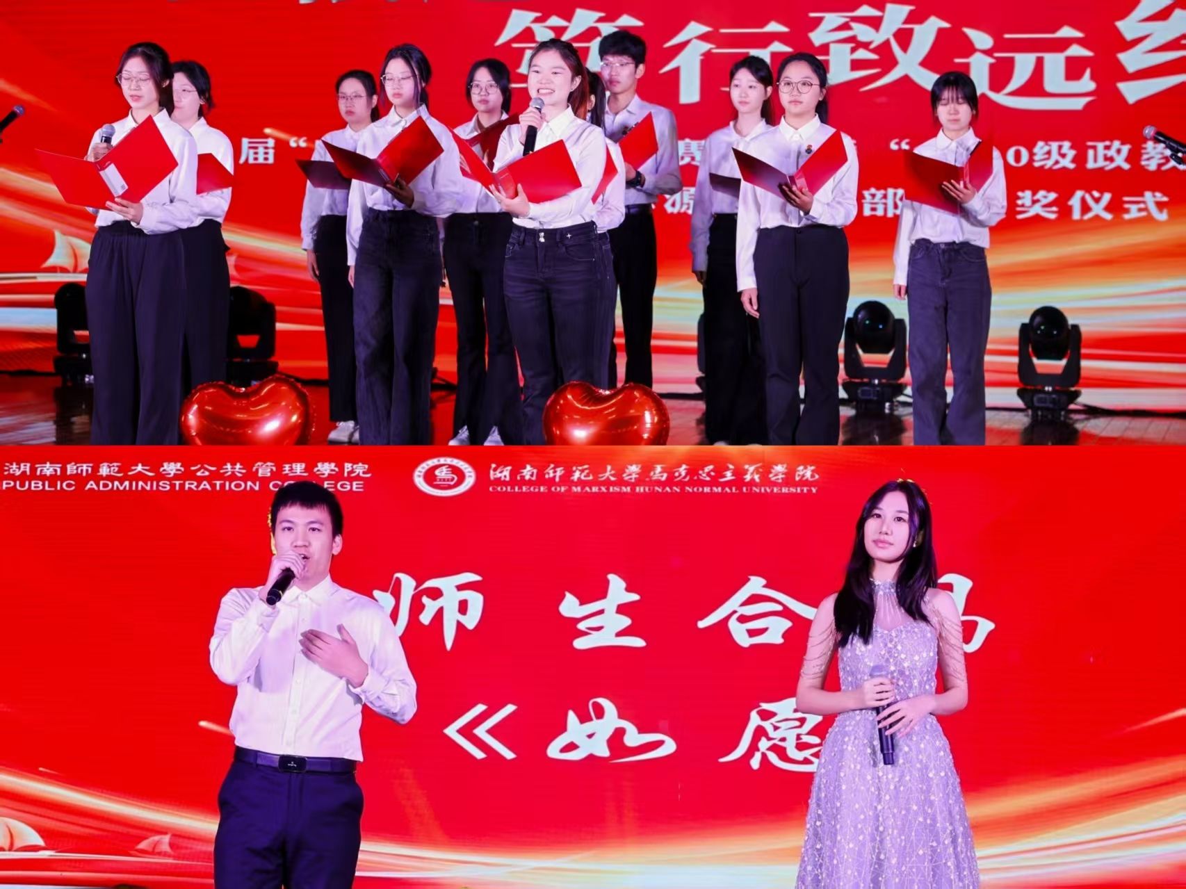 比赛尾声,公共管理公司2025级辅导员罗洋与2024级社会学班潘禹潼合唱的《如愿》,以深情歌声传递美好期许,让现场氛围愈发热烈。