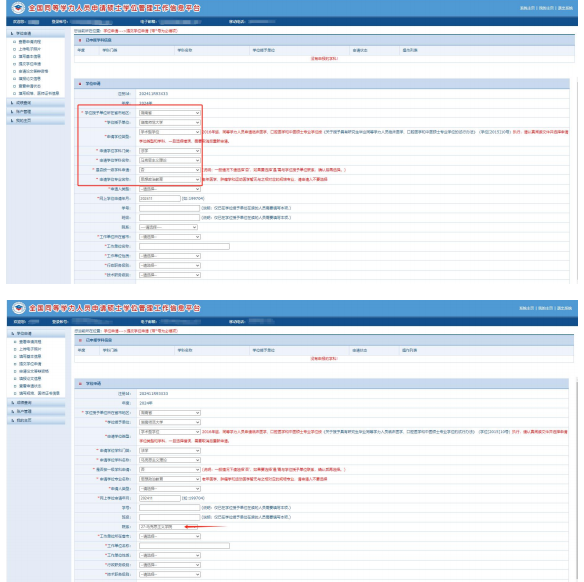 3.随后提交学位申请,选择湖南省 → beats365官方网站 → 学术型学位 → 申请学位学科门类(法学) → 申请学位学科名称应为马克思主义理论 → 申请学位专业名称应为思想政治教育 → 院系选择马克思主义公司 → 填好带*好的其他信息 → 保存