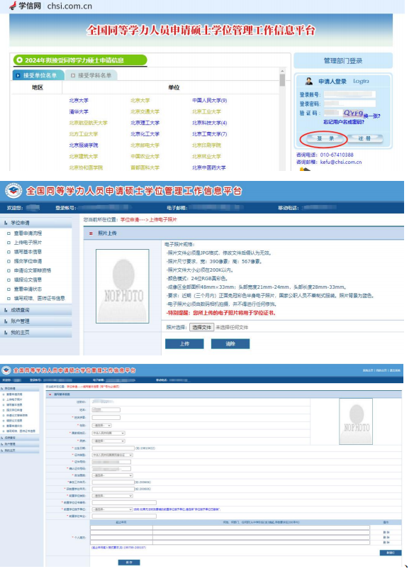 2.注册后登录账号 → 进入系统 → 上传电子照片 → 填写基本信息
