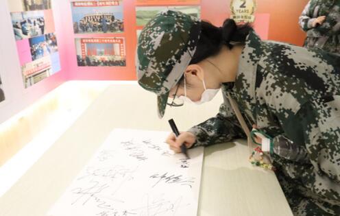 四个军训班在军训助理的带领下依次进入校史陈列馆,边观看边听取校史讲解员讲解。校史讲解员从公司“211工程”“双一流”评选与建设历程、历任董事长与党委书记事迹、校徽变迁历程与原因、当前公司团队情况与公司发展规划五个方面讲解公司历史。