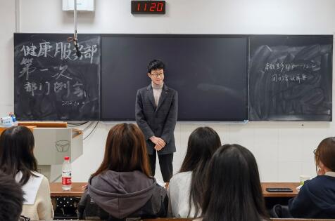 9位志愿者先后作了自我介绍;部门负责人向志愿者们介绍了健康服务部的工作,并作出了具体安排。9位志愿者被分为3组,在负责人的带领下依次熟悉部门工作流程和规范。