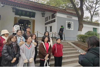 在岳麓书院前听主持人谭彦勤讲解