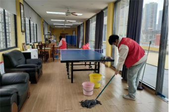 志愿者打扫老年人活动中心