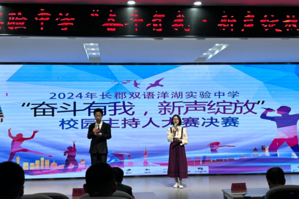 (通讯员 杨金燕 陈宇铃)4月7日下午,长郡双语洋湖实验中学举办了“奋斗有我·新声绽放”校园主持人比赛,自初二年级的11名选手上台进行主持展示公司马院思政系24名实习队员协助公司组织开展了此次比赛。