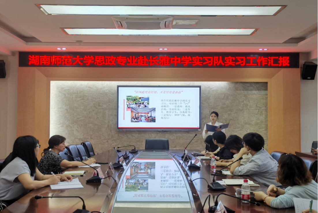 (通讯员 戴佳悦 曹湘)5月15日下午,公司赴长雅中学实习队于长雅中学综合楼三楼会议室开展实习工作汇报会。参与此次汇报会的有长雅中学教务处主任熊熠文,初三年级主任杜小露,政治教研组组长吴珂,初一年级政治备课组组长谭伟容,政治教研组老师们,beats365官方网站教授蒋国海,实习队指导老师陈文珍和朱飞,以及实习队全体队员。