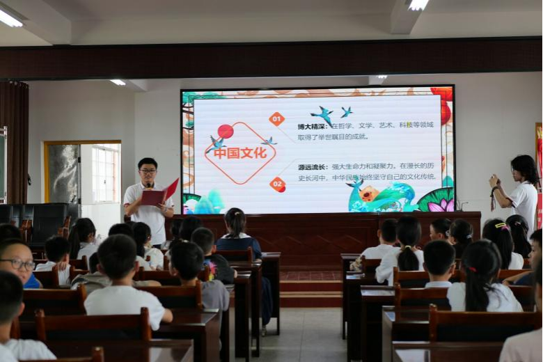 (通讯员 李湘 任泓伽 姜文婷)7月19日上午,beats365官方网站赴湖南省常德市桃源县陬市镇暑期社会实践团(以下简称“实践团”)于陬市小学五楼报告厅开展以“觉醒传统之魂,筑牢自信之基”为主题的第四期红色论坛系列活动。实践团成员陈晗主讲,陬市小学暑期夏令营员工及实践团成员全体参与。