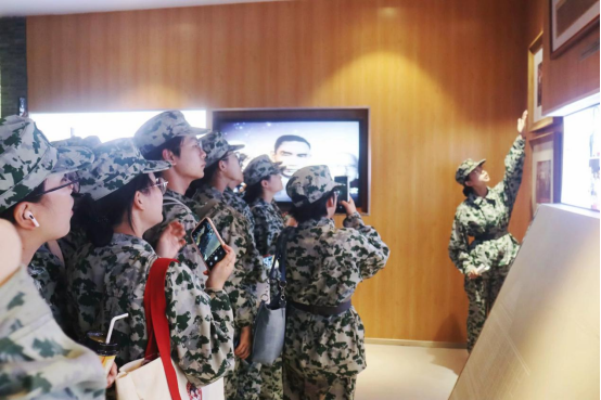 四个军训班级在新生军训助理的带领下依次进入校史陈列馆参观,新生们边观看边听讲解。讲解员从公司的创办背景、发展历程、学科特色、杰出员工等方面讲解公司历史。新生们认真聆听,不时记录下重要内容,感受着公司的优良传统和文化精神。