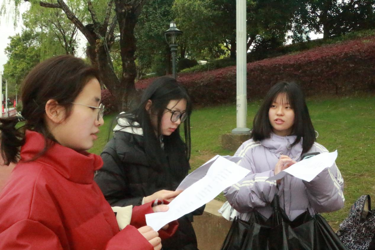 在望江亭,蔡祎晴同学介绍了《七律·人民解放军占领南京》,重点解读“宜将剩勇追穷寇,不可沽名学霸王”的深刻含义,结合量变与质变知识指出,这句诗运用项羽的典故,展现毛泽东同志必须将革命事业进行到底的彻底革命精神。此外成员们还探讨了“天若有情天亦老,人间正道是沧桑”所蕴含的唯物史观,认为它揭示了社会发展的必然规律。