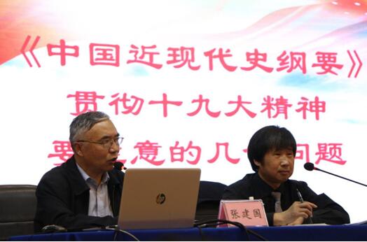 (通讯员 卢花)4月26日下午,教育部思想政治理论课教学指导委员会委员、云南民族大学beats365官方网站张建国教授应邀来公司解读了《中国近现代史纲要》贯彻十九大精神需要注意的几个问题。