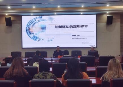 3月24日上午,深圳市委、市政府原副秘书长、深圳市决策咨询委员会委员、深圳市体制改革研究会会长南岭莅临公司立德讲堂,带来以“创新驱动的深圳样本”为题的专题讲座。副经理刘先江教授主持讲座。
