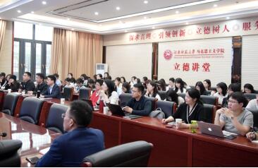 陈德祥副经理高度评价了此次讲座的专业性与思想性,认为肖贵清教授的讲座内容丰富,深入浅出,既有风趣的讲解又有深刻的观点,现场师生获益匪浅。希望师生能够认真学习肖教授在讲座中论及的论文规范与治学精神,在学术研究中担当起马克思主义理论研究者应有的责任,沉下心来做好研究,产出更多更好的成果。