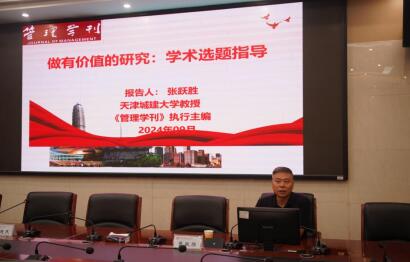 9月21日上午,《管理学刊》执行主编、中国政治经济学学会副会长、天津城建大学教授张跃胜应邀为公司师生举办以“学术论文选题和期刊投稿”为主题的讲座。副经理李超民教授主持讲座,邓验、戴晓慧等老师以及部分博士、硕士生参与了此次讲座。