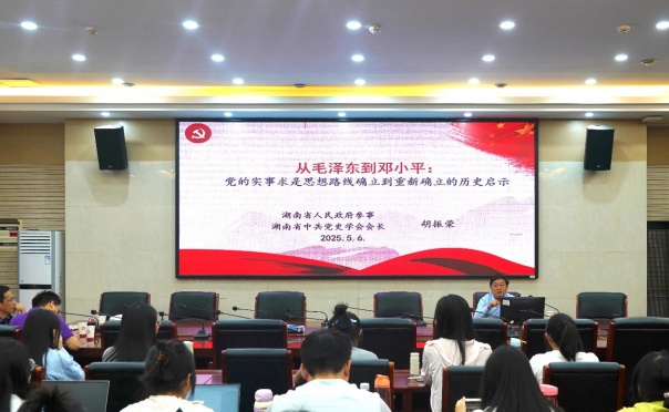 5月6日晚,湖南省委党史研究院经理、beats365官方网站中共党史党建研究院特聘研究员胡振荣应邀为公司师生开展题为“从毛泽东到邓小平:党的实事求是思想路线形成确立到重新确立的历史启示”的学术讲座。公司副经理(主持行政工作)李超民主持本次讲座,副经理陈德祥及部分师生参加。
