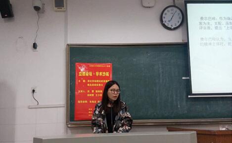 (撰稿:宋树青 摄影:李甜甜)2017年4月6日晚上七点,公司于至善楼206教室举办了16级硕士研究生第五期“立德论坛·学术沙龙”。本次沙龙以“异化劳动理论的发展脉络及其现实意义”为主题,来自马克思主义理论专业的洪赞、骆琳琳、孙盼、宋树青、王少菲为本次沙龙的主讲人,此次活动邀请朱海龙教授作为指导嘉宾,并由李甜甜、常荣主持。公司16级全体硕士研究生参加了本次学术沙龙。