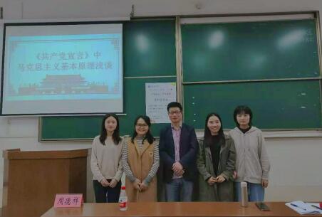 王婷同学主要阐述了《共产党宣言》中马克思关于“阶级斗争”的基本观点,并结合《宣言》内容对当下关于马克思主义的阶级和阶级斗争理论的一些热点问题进行了思考。