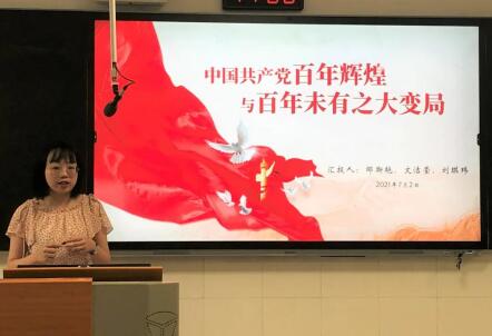 邹斯艳同学系统介绍了中国共产党的百年辉煌业绩,从光辉历程、百年伟大变迁、光辉历程分辨叙述。