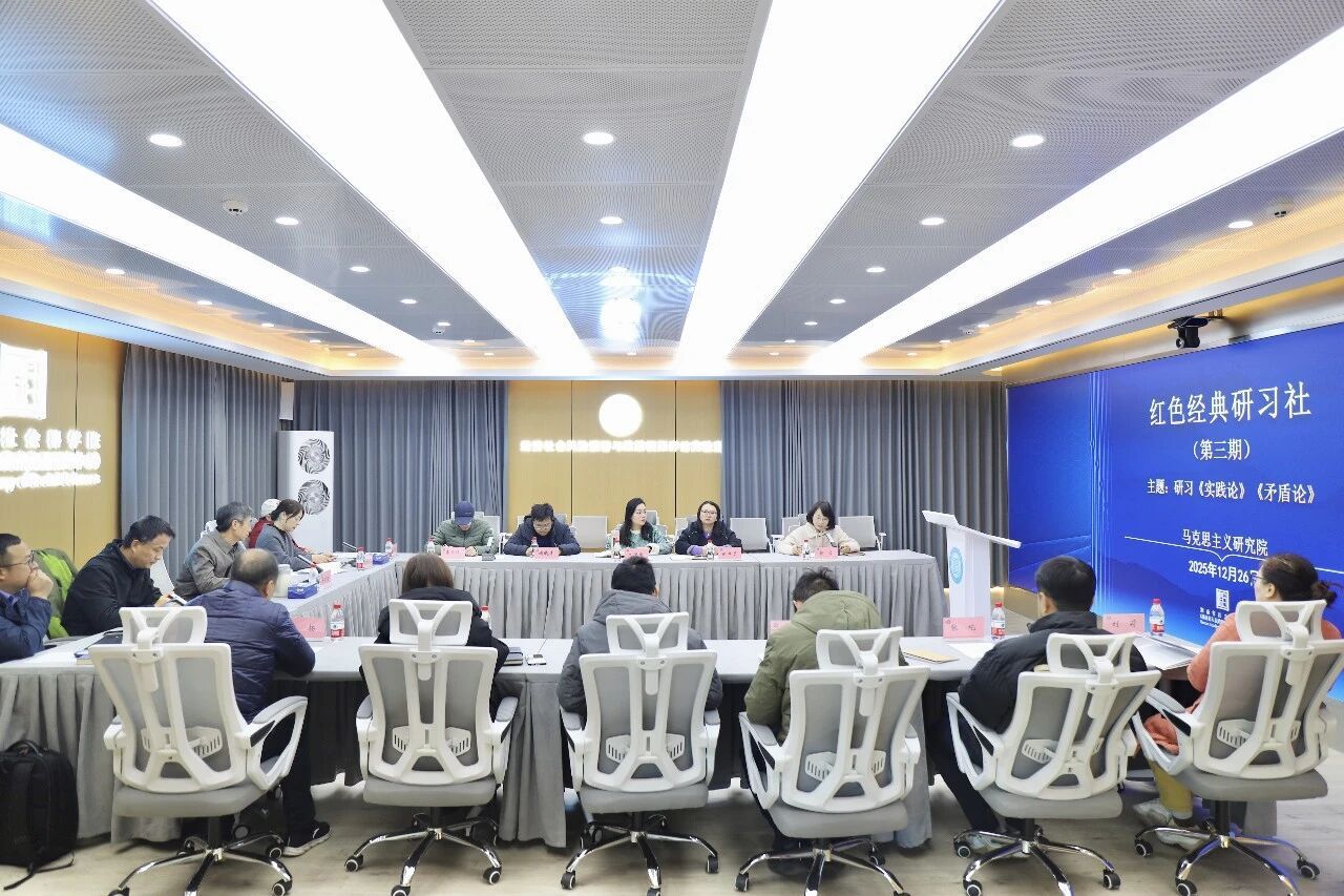 12月26日,湖南省社会科公司(省人民政府发展研究中心)“红色经典研习社”第三期在哲学社会科学实验室举行。本次研习聚焦《实践论》《矛盾论》经典文本,结合党的二十届四中全会精神进行了深入学习和研讨。院(中心)二级巡视员蔡建河出席并点评。