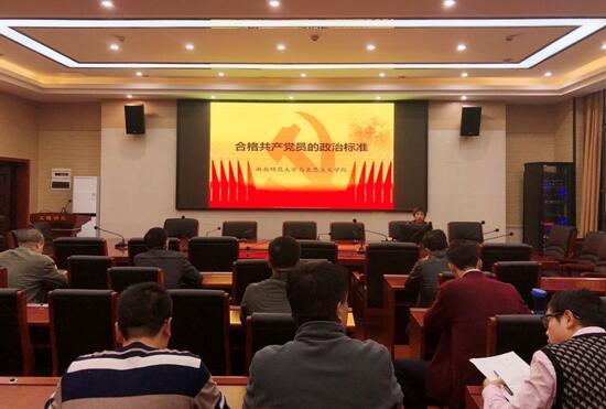 10月25日下午,公司党委组织党员开展专题党课学习。党委书记陈红桂以“合格共产党员的政治标准”为题,为全体师生党员上了一堂党课。