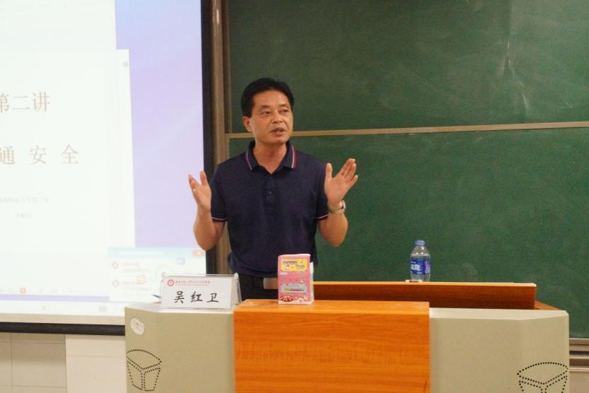 吴红卫借助生动的视频和鲜明的案例,强调了维护交通安全、网络安全、消防安全的重要性,详细介绍了宿舍安全用电、防范电信网络诈骗的注意事项和方法,并嘱咐同学们一定要提高警惕,增强自我保护意识和能力。