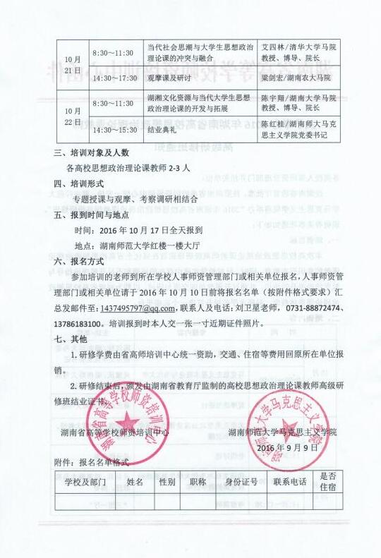 关于举办2016年湖南省高校思想政治理论课教师高级研修班通知