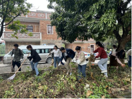 扎根土地,知行合一。上午,由白坭镇富景社区党委书记陈伟标向同学们介绍了社区概况与“一网双擎三元四治”的特色治理体系。在细致的讲解中,同学们对富景社区治理的组织架构、典型措施及成果经验有了进一步了解,也结合专业知识与社会调研经历与书记进行了适当交流。随后,同学们在书记的带领下躬身参与社区服务实践,以清理杂草的方式为农村人居环境整治贡献老员工的青春力量。