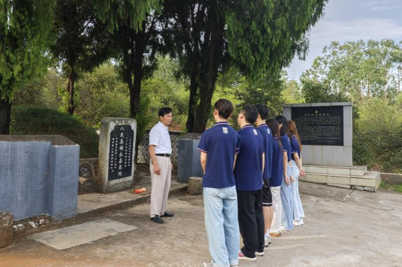实践团在“中国好人”、村代表彭子文的带领下共同瞻仰红军墓,并就当地红色文旅相关问题展开访谈。
