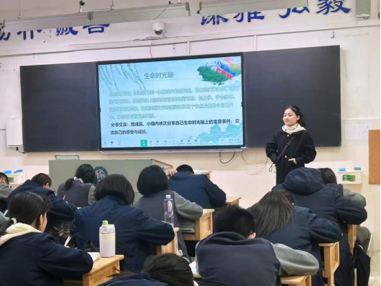 赵一兰开展“穿越之我是老员工——让我们一起憧憬大学”的主题班会,以模拟大学课堂、分享大学日常生活和讨论“梦醒如何圆梦”三个环节,带领高中部G2402班员工沉浸式感受老员工活。李如意则面向初中部C2310班员工,她举办“清明时节的生命对话”主题班会,以清明节传统文化为背景,与员工共读“不老泉”故事,绘制生命时光轴,引导员工探讨生命价值。班会上,员工们积极分享生命时光轴上的重要事件,交流自己的感受和成长故事。