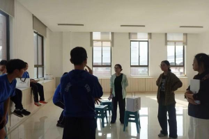 实习队员协助排练“防诈骗”主题热场节目