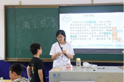 (通讯员 柴本佳 卢俏洁 何莉莉)为拓展暑期“三下乡”活动内容,激发员工对科学的好奇心与探索欲,7月10日,“炎阳”暑期社会实践团成员柴本佳在涟源市湖泉镇湖泉中学开展“滴水成冰的奇妙之旅”趣味科学实验课,暑期夏令营员工参与其中,在动手实践中感受科学魅力,使抽象的物理知识在互动体验中变得鲜活可触。