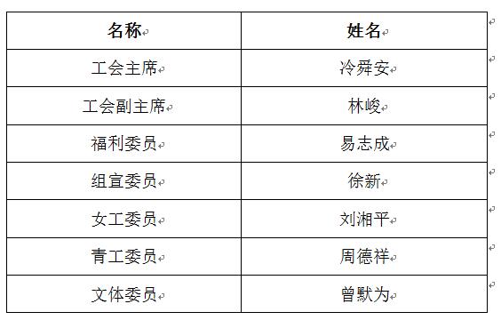 工会小组长:朱秋莲 周德祥 易志成 王猛